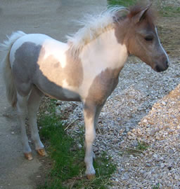She is a pretty small mare of 30 inches (76 cm), grey pinto, extremely refined, with a sweet and gentle character... She very much looks like her own sister Phantom Loumir who won lots of show awards and to her brother Phantom Versailles who has just brillantly started his first show at Deauville in July 2009 with a AMHA yearling champion title.