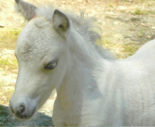 No other horse has his striking beauty. He is cherry bay and 34 inches high (86,5 cm). Is it really necessary to describe him? His neck already belongs to the legend just like his father's does, whose reputation is to pass it on to his foals. His legs are long and the curve of his back fautless. And one cannot forget his head or look.